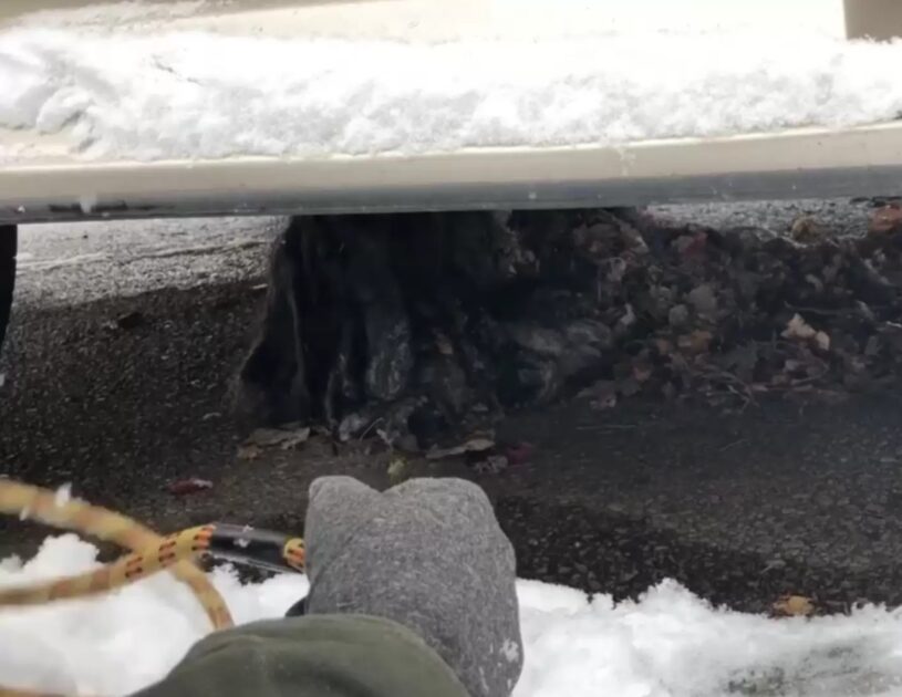 Donna crawled beneath the van, gently looped a leash around the dog’s neck, and spoke softly to him, trying to coax him out.