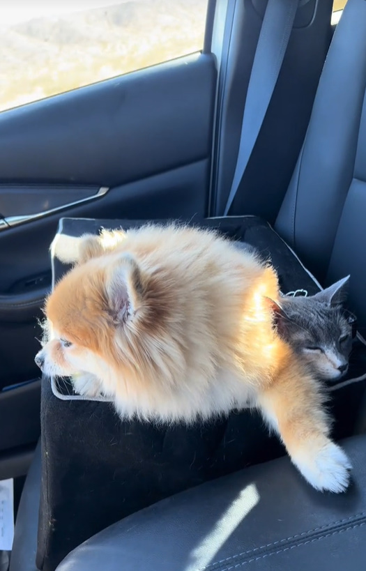 Melyssa began noticing that Lola was imitating Goose’s behavior. She started lounging in the same way and even stretched just like her feline companion. Though surprised, Melyssa was delighted to see how well the two got along.