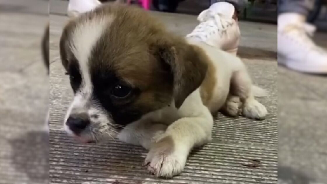 The puppy’s eyes became filled with tears as he looked at the people, begging them to help him.