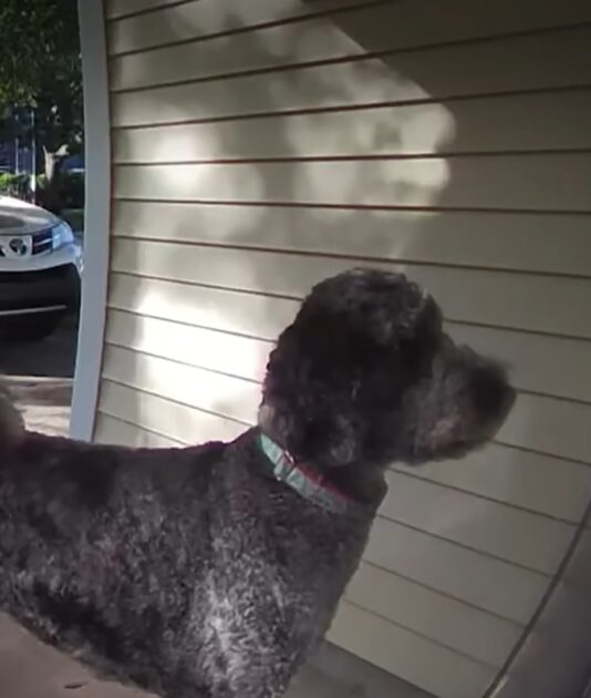 He walked up to Leonard’s porch and waited. A few minutes went by, and no one came to the door. The Ring camera recorded the moment Mako lowered his head sadly and began to turn away.