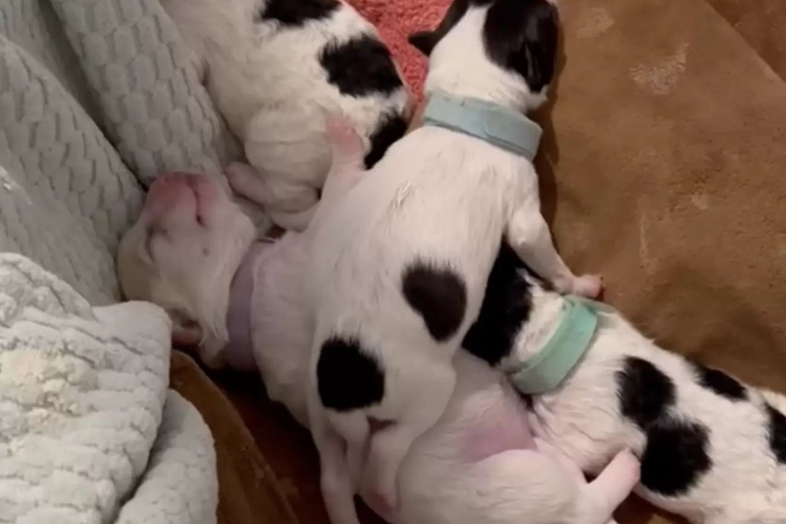 “I panicked at first, but then somehow mom mode took over,” Belle recalled. “I got towels and called the friend who helped me groom her … She got there before the third and fourth came and helped me get them cleaned up and nursing on Mama.”
