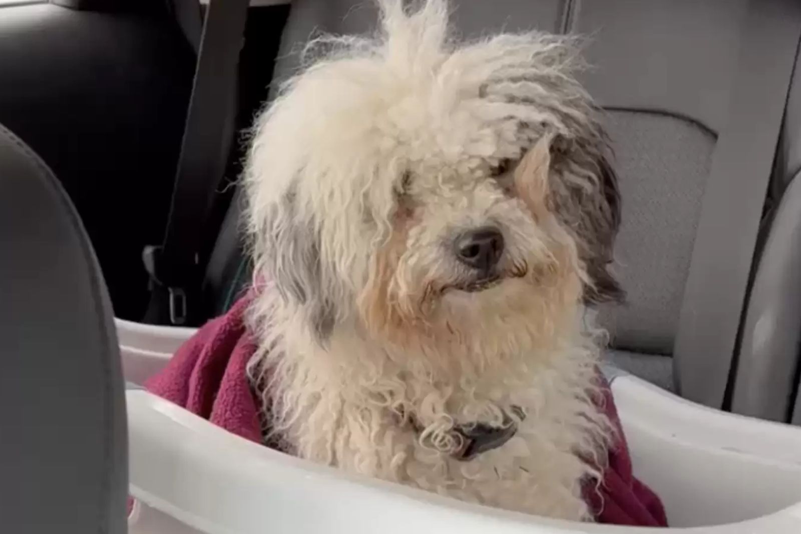 Belle could not leave her behind. Bringing Swiftie home, she discovered that the dog’s matted fur formed a thick, heavy layer, almost like a blanket.