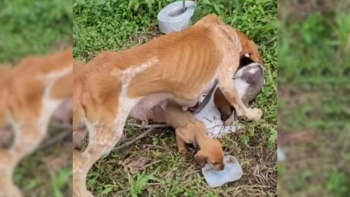Starving Dog Mom Tied To A Fence Fought Bravely To Keep Her Babies Alive Until Kind Souls Rescued Her