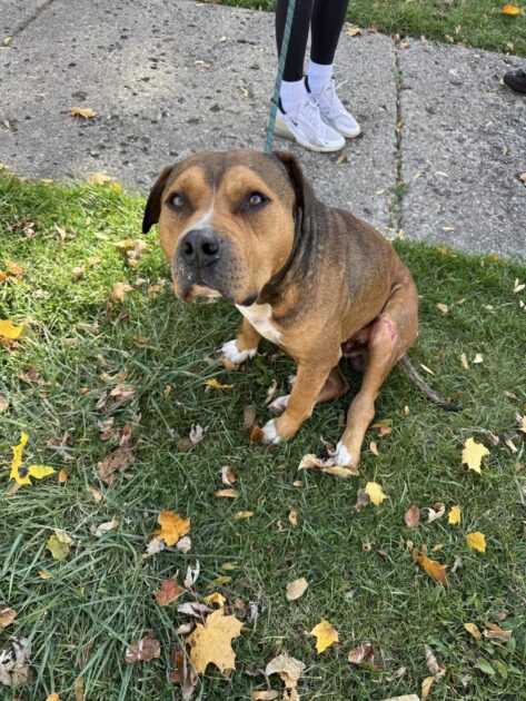 “Neighbors say he’s the neighborhood stray that got hit by a car a week ago. Despite being in obvious pain this meathead just wanted to lay his head in our lap and hop right in his one way ticket outta the hood,” the Michigan rescuer added.
