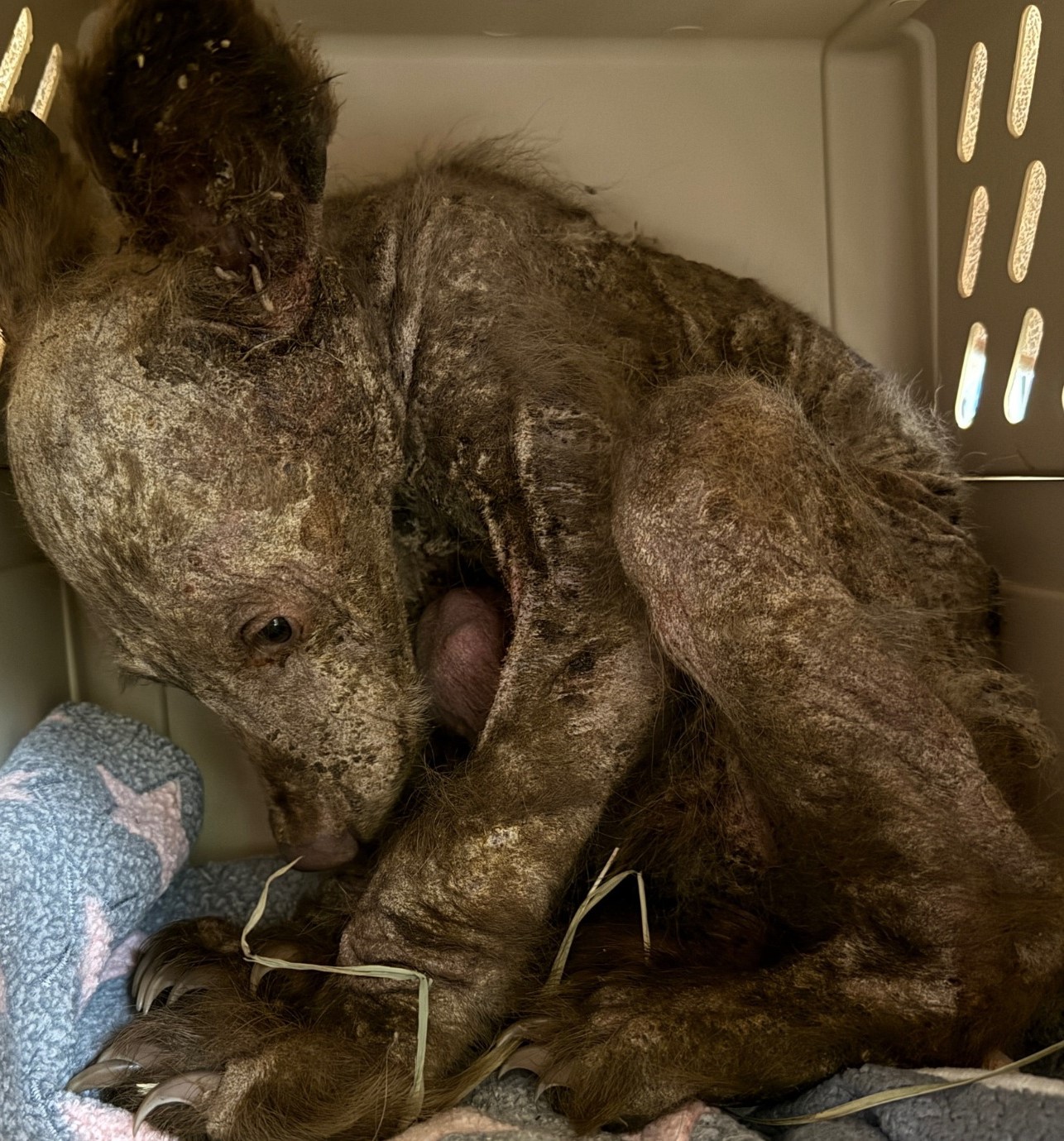 The cub was frail, sickly, and showed clear signs of distress. He was dangerously underweight, dehydrated, and suffering from anemia and skin infections.