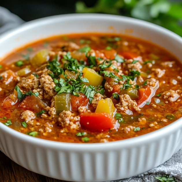 Stuffed Pepper Soup takes all the hearty, comforting flavors of traditional stuffed peppers and transforms them into a cozy, easy-to-make soup. Packed with seasoned ground beef, sweet bell peppers, tomatoes, rice, and aromatic spices, this one-pot meal is a family favorite. Perfect for weeknight dinners or meal prep, this recipe delivers a rich, savory bowl of goodness in under an hour. Serve it with crusty bread or a side salad for a complete, satisfying meal!