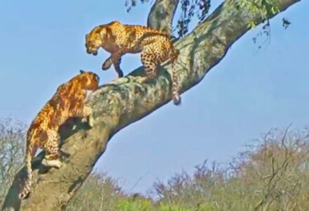 Leopards Tumble from Tree In Wild Fight