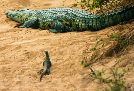 Monitor Lizard Raids Nest and Eats Crocodile Eggs