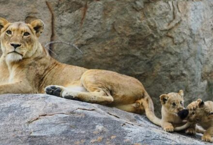 The mother lioness kept a rather serious demeanor as the two little ones tussled over her tail. Her cubs meant business, but she chose to keep the…