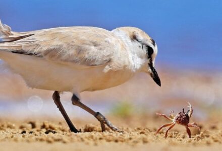 Tiny Plover Devours Giant Crab