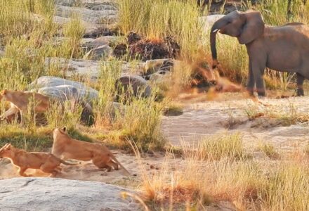 Elephant Ruins Lion Pride’s Midday Nap