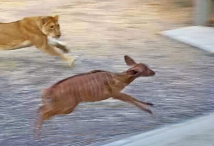 A Heart-Stopping Chase at Waterside Lodge In a jaw-dropping moment captured at Waterside Lodge, a lion standing casually near a set of gates was suddenly confronted with a high-stakes…