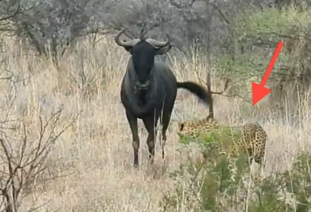 The wildebeest stood its ground in the presence of the lone cheetah, hardly flinching as the agile predator skulked past it and proceeded to settle in the…
