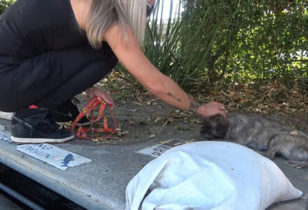 California Kittens Scatter In Fear When A Woman Approaches A Box And One Vanishes Into A Deep Hole