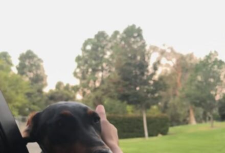 California Doberman Shows Up Dirty And Alone At A Car Window Then Settles In Like She Belongs