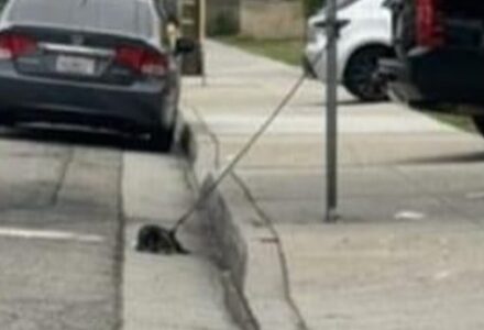 California Dog Left Tied To A Pole Waits Helplessly As Crowds Pass Without Offering A Hand