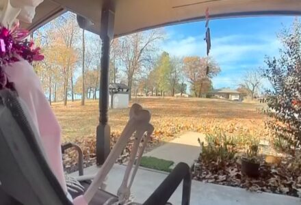 Camera Catches Furry Culprit Stealing Package From Skeleton On Oklahoma Porch