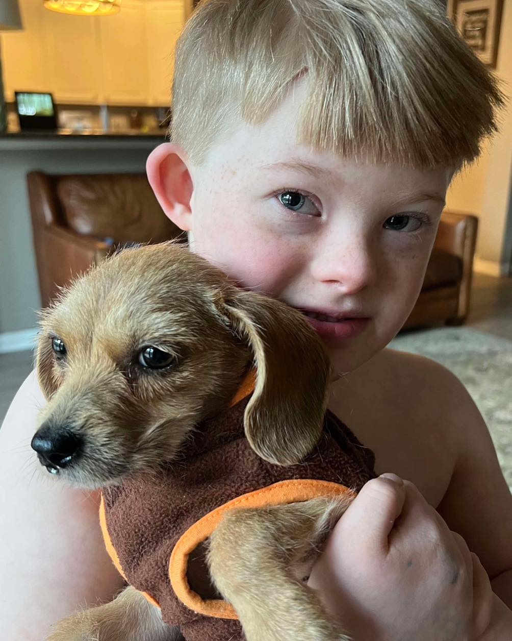 “We have five children, and he LOVES to interact with them. He is particularly smitten with our 7-year-old son, and they are constant companions. His days consist of constant play time, all the food and snacks his little heart desires, and never-ending love. What a different life he is living now,” Medlin said.