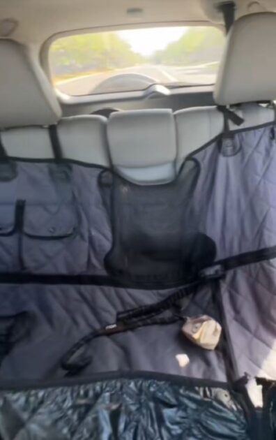 The cover stretched across the backseat, giving her pup a cozy hammock-like space to relax during trips.
