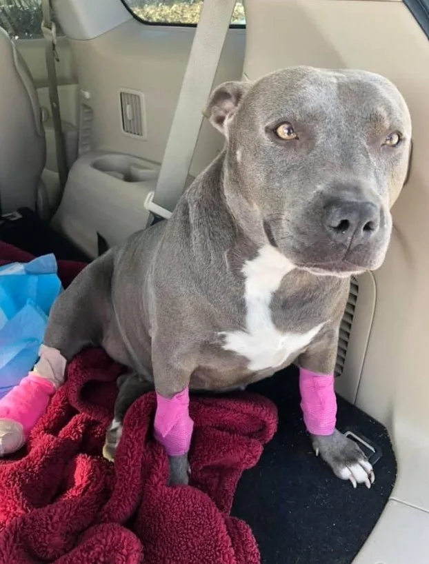 The rescuers could not determine how long her leg had been like that or when she had been abandoned, but it appeared likely the injury occurred either during her dumping or from being thrown from a vehicle.