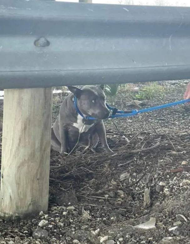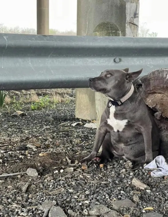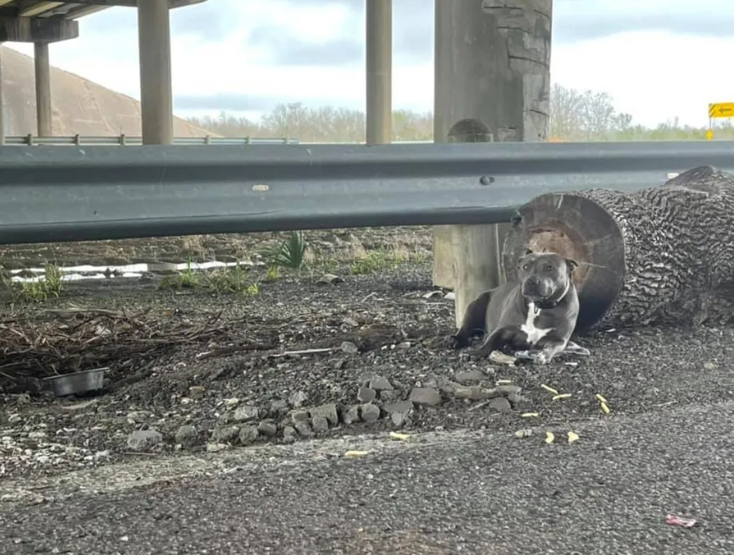 A Texas dog and cat rescue, Three Little Pitties Rescue, was alerted via Facebook about a dog left alone beneath a freeway overpass.