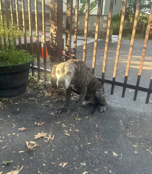 The boxer, starved for affection as much as food, walked straight toward her, eager for the comfort of a gentle touch.