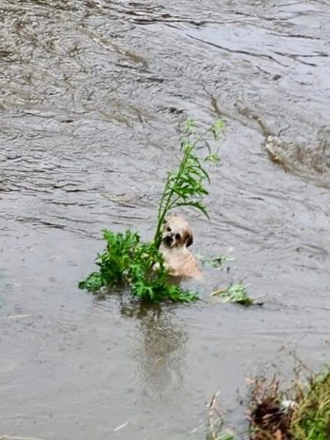 This tiny Shih Tzu had been struggling to hold on, stuck in a Houston, Texas drainage ditch known as a bayou, gripping a patch of reeds as if it were his last anchor.