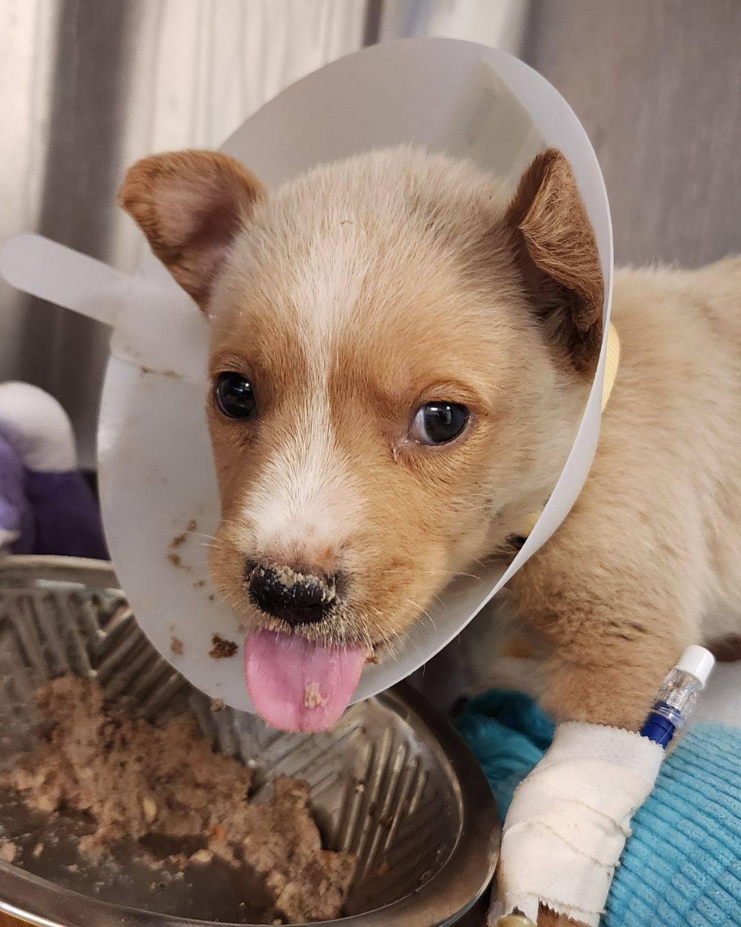 “Today, we’re seeing that despite experiencing such a traumatic experience, Tommy still has a fervor for eating — he licks his bowl clean every time, and has some of that puppy playfulness in him,” the rescue added.