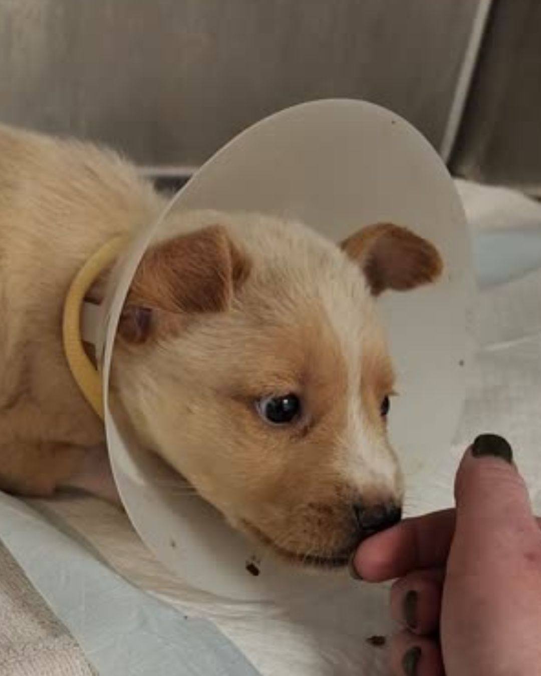 “Tommy was thrown from a car and a community member witnessed the horrific scene! Luckily, someone was there to step in when the person in the car failed this sweet puppy. This quick-thinking individual alerted animal services who brought the puppy into an emergency clinic to receive immediate treatment overnight,” the Texas rescue wrote on Facebook.