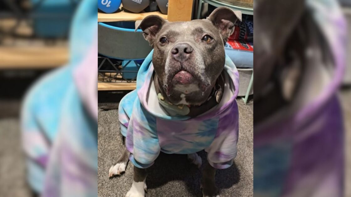 dog sitting in a hoodie