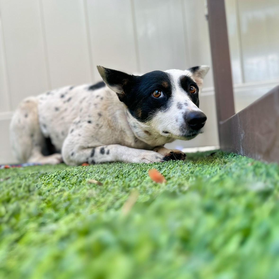 Staff believed Chilaquile may have lived as a farm dog, with little experience around people. Social situations were unfamiliar, and trust didn’t come easily.
