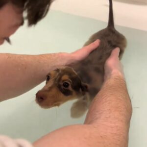 At just three months old, Chewy was found trembling inside a restroom at the Las Vegas airport. A woman who discovered him initially assumed it was another cruel case of abandonment. But then she noticed a folded note lying beside him, and everything changed.