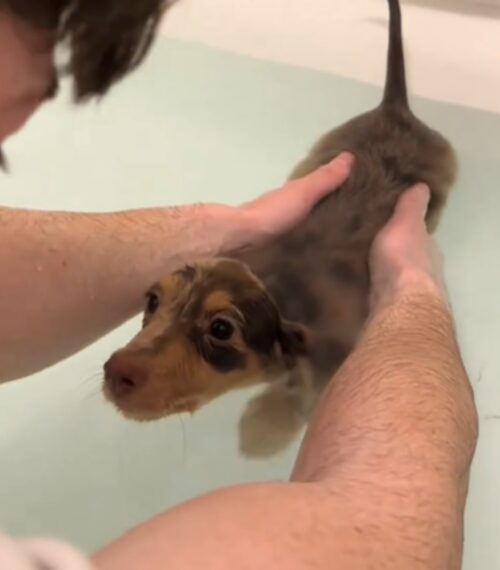 The Good Samaritan acted quickly, bringing Chewy to Connor and Millie’s Dog Rescue (CMDR), where he was welcomed with open arms. His recovery began immediately.