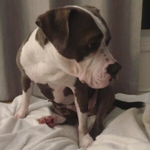“Hi! I’m Chewy! My owner was in an abusive relationship and couldn’t afford me to get on the flight. She didn’t want to leave me with all her heart, but she had NO other option. My ex-boyfriend kicked my dog when we were fighting and he has a big knot on his head. He probably needs a vet. I love Chewy sooo much — please love and take care of him.”