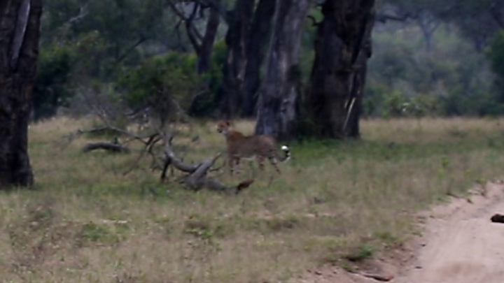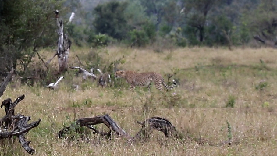 As the footage begins, we see one of two cheetahs making its way through the long grass of an open woodland. With few obstacles, this is ideal hunting terrain.