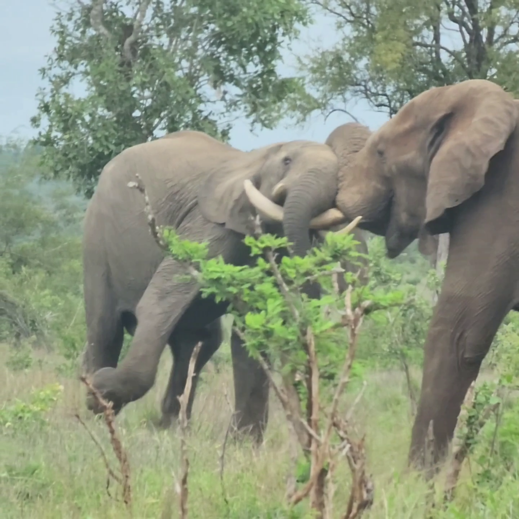 It is also worth noting that neither of the bulls is excreting via its temporal gland. These glands, located on either side of an elephant’s head, are an excellent indicator of stress or aggression.