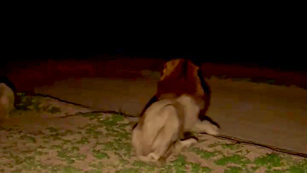 The lions appeared relaxed and unbothered by the safari guests, their large bodies lying comfortably as they soaked in the cool nighttime air. Night safaris often offer a more intimate look at predator behaviour, and this moment initially seemed no different.