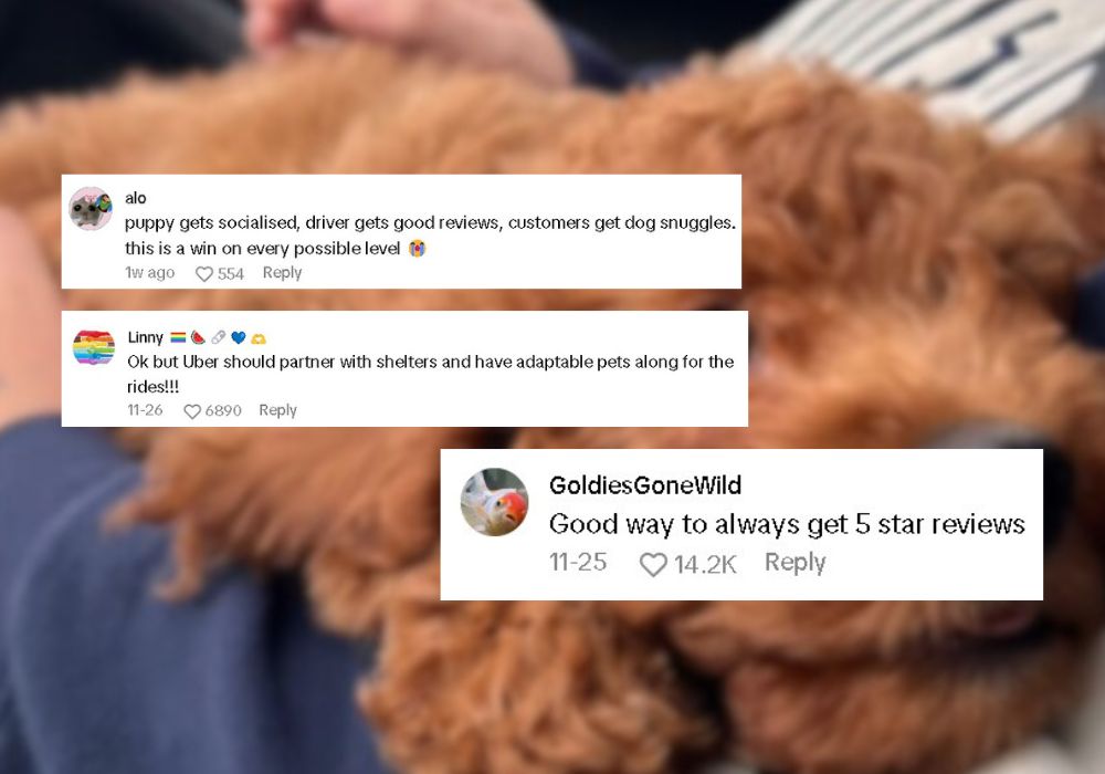 “puppy gets socialised, driver gets good reviews, customers get dog snuggles. this is a win on every possible level 😭,” one user wrote.