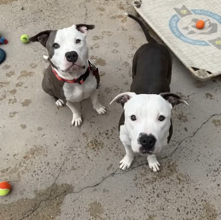 The two Pit Bulls were stuck, unable to climb out, and waited in fear, hoping someone would see them and come to their aid.