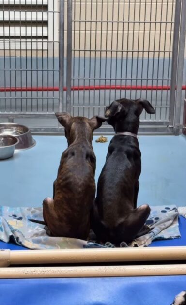 Rescuers eventually discovered the pair and brought them to an animal shelter in Houston, Texas, where they were placed together inside a single kennel.