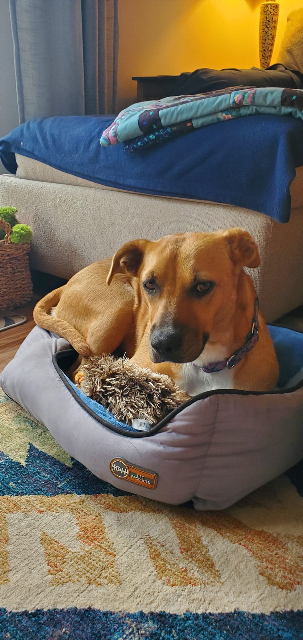 Lovebug’s new family decided to rename her Ruby, a symbol of her inner strength and beauty. Now settled in her permanent home in Virginia, Ruby spends her days exploring the outdoors, going on camping trips, and playing with her canine siblings, Beamer and Charlotte.