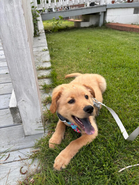 “This is Goose! Our golden deceiver who we totally thought was mostly Golden Retriever,” Leslie added in another post.