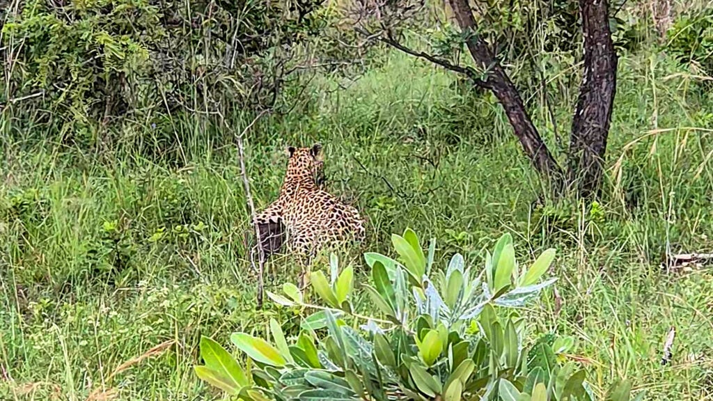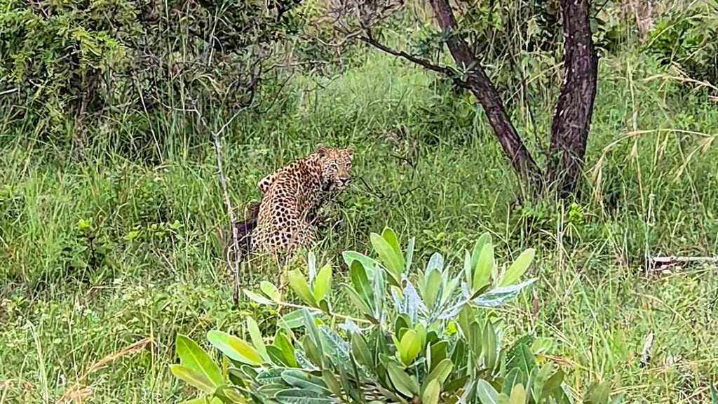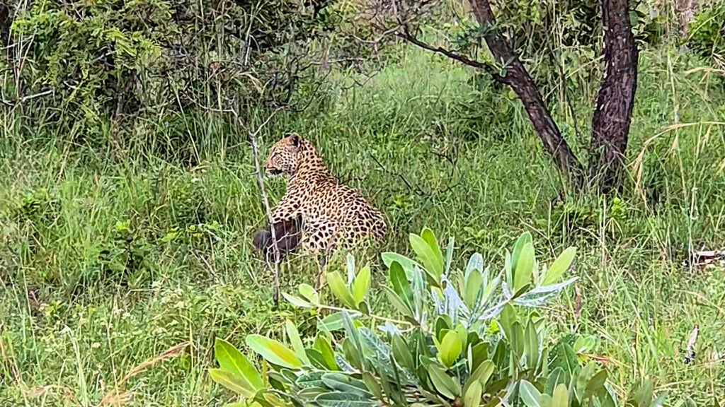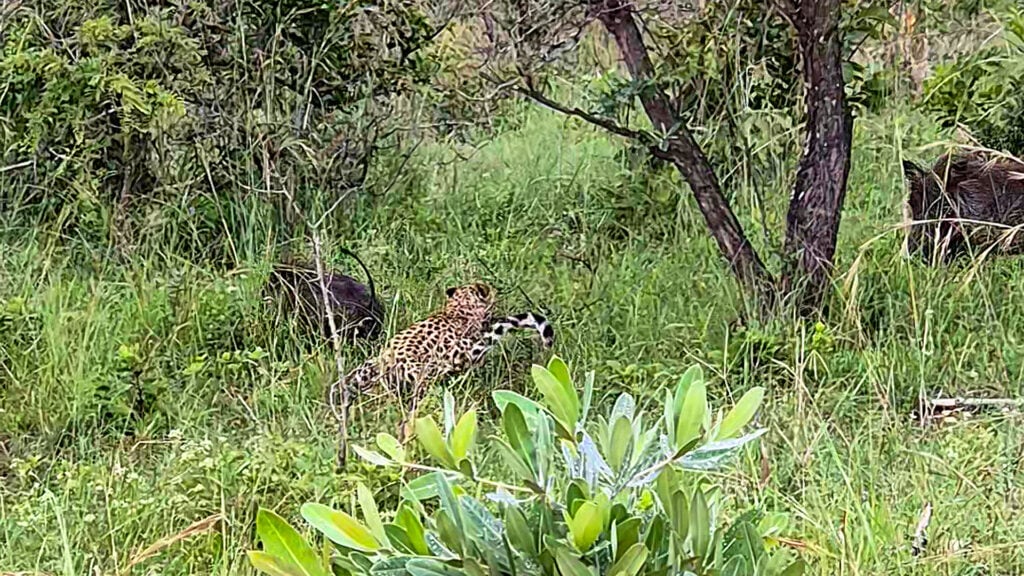 This warthog made such a racket, the leopard appeared to be suitably confused. The predator looked around, with an expression which suggested, “What’s going on?”