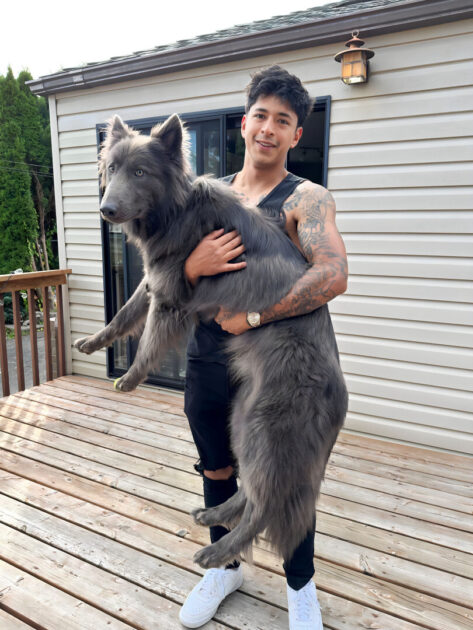 “He just wants to play with everyone…truly a sheep in wolf’s clothing. He gets stopped for pets or people ask me questions about him everyday we go for a walk literally,” his America’s Favorite Pet profile reads.