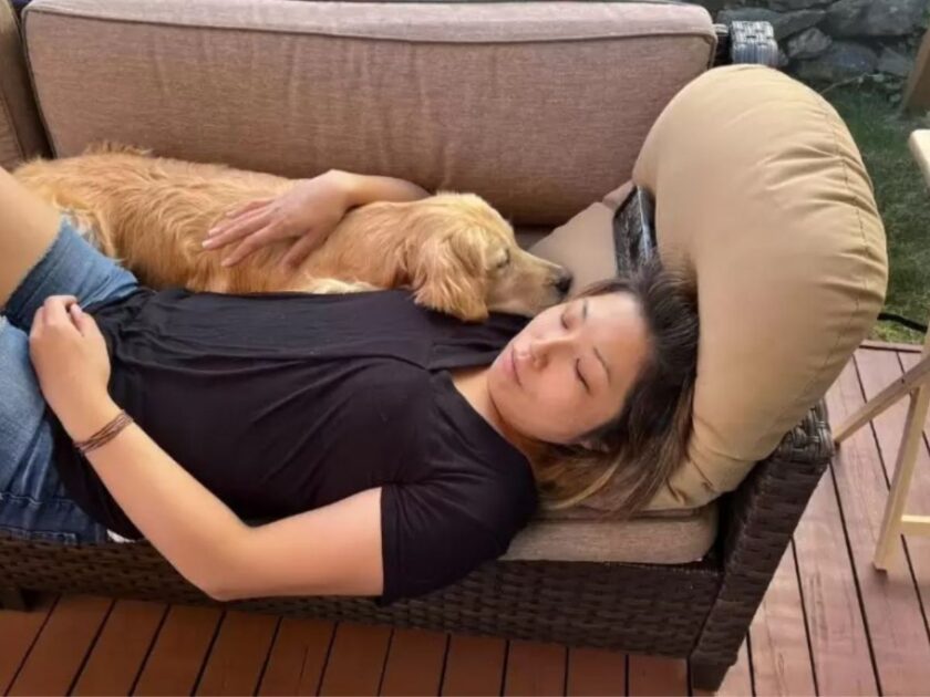 Akira, a Golden Retriever, enjoys the usual dog activities: playing fetch, cuddling, and spending time with her family.