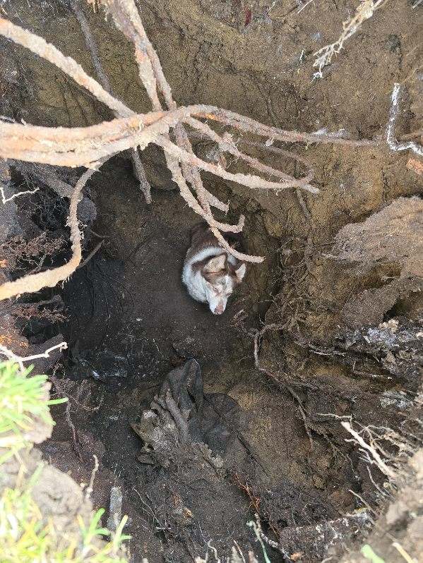 His family rushed over and found that Rip had fallen into a sinkhole. Thankfully, he wasn’t hurt. But the hole was nearly ten feet deep, making a safe rescue far more difficult than they had imagined.