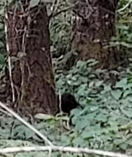 At the base of a tree sat what appeared to be a strange, mud-covered clump of black fur.
