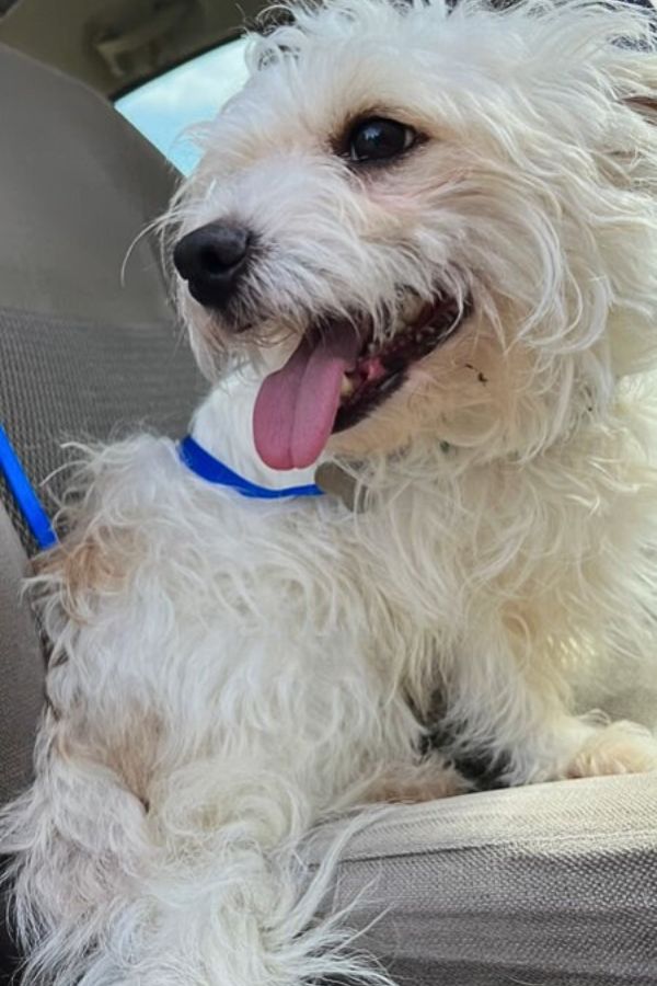 Samson’s tail wagged with joy as he walked out of the shelter beside the people who had chosen him forever.