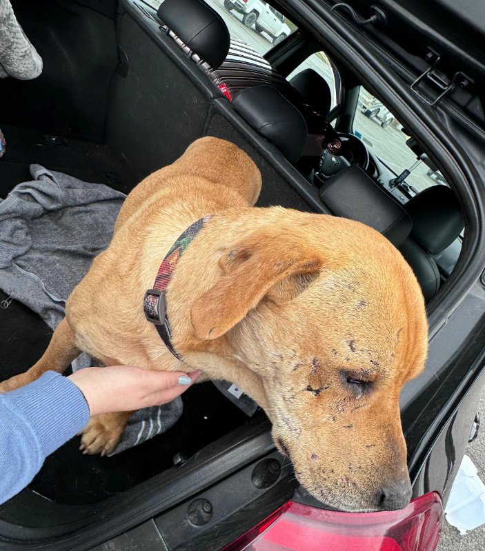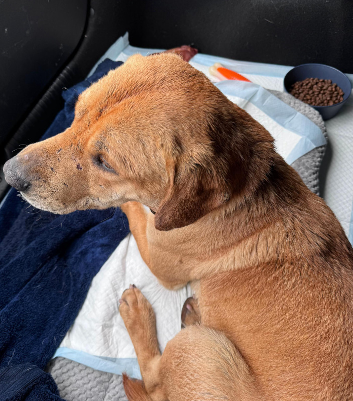 It was clear that this dog had been on his own for some time and needed help. As Mariah and her fiancé examined him, they noticed a limp, likely from an old injury.
