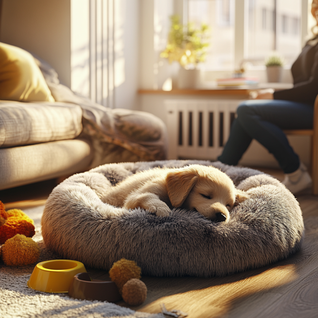 Beyond the basic essentials, creating a warm and inviting space for your new dog will help them feel comfortable. Set up a special spot where your dog can relax and feel secure. Consider placing their bed in a quiet corner of the room, where they can observe the family but also retreat when they need some alone time.